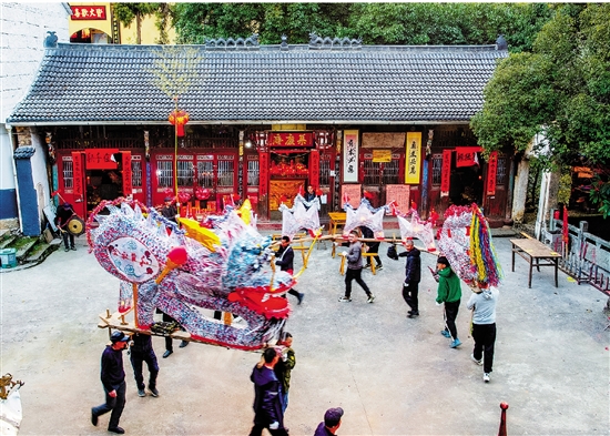 2月21日,农历二月初二,民间俗称“龙抬头”,寓意春回大地、万物复苏。缙云县前路乡举办了丰富多彩的民俗活动,祈愿这一年风调雨顺、幸福安康。两条由村民自制的板龙、布龙绕村而行,向村民和游客传递着传统民俗文化的魅力。