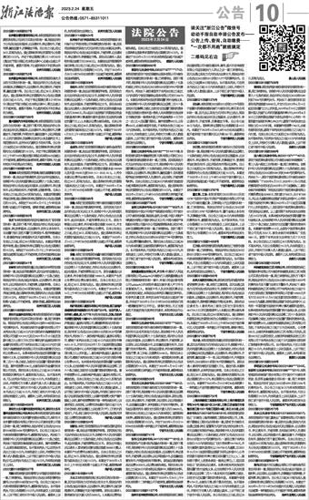 张光飞:本院受理原告邹亚洲诉被告张光飞民间借贷纠纷一案,因你下落不明,现依法向你公告送达起诉状副本、举证材料副本、应诉通知书、权利义务告知书、自动履行指引及拒不履行后果预告书、程序转换裁定书、普通程序独任审理通知书及开庭传票等。自本公告发出之日起,经过30日即视为送达。本案适用普通程序审理,提出答辩状和举证期限为公告送达期满后的15日内。本院定于2023年4月17日上午9时00分在浦沿法庭第四法庭公开开庭审理,你若未到庭将依法缺席判决。 杭州市滨江区人民法院