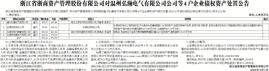 浙江省浙商资产管理股份有限公司对温州弘瀚电气有限公司公司等4户企业债权资产处置公告
