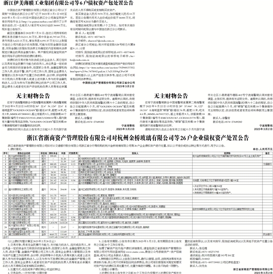 浙江伊美薄膜工业集团有限公司等6户债权资产包处置公告