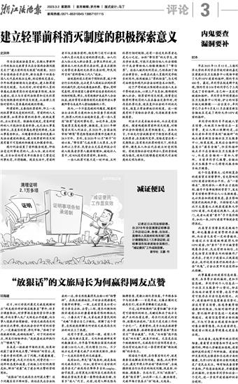 刑法不应是呆板冷冰的,而应是有温度的。探索构建轻罪前科消灭制度,对维护社会和谐稳定具有积极意义。具体而言,不妨先行尝试探索对于轻型犯罪或过失犯罪者,在其服刑完毕,消除危害后果一定期限后,没有再次犯罪的情况下,封存其前科,避免本人和后代在就业时受到限制。有效消除社会对这部分人员的身份歧视与偏见,使他们能够感受到现代司法制度的文明与理性。