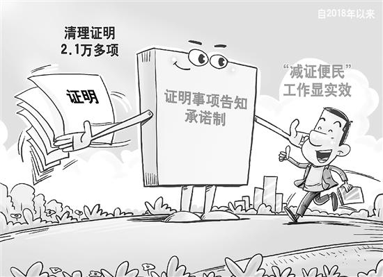 记者近日从司法部获悉,自2018年全面清理证明事项工作启动以来,各省、自治区、直辖市人民政府和有关部门累计清理取消2.1万多项证明,证明事项告知承诺制全面推行,“减证便民”工作成效显著。
