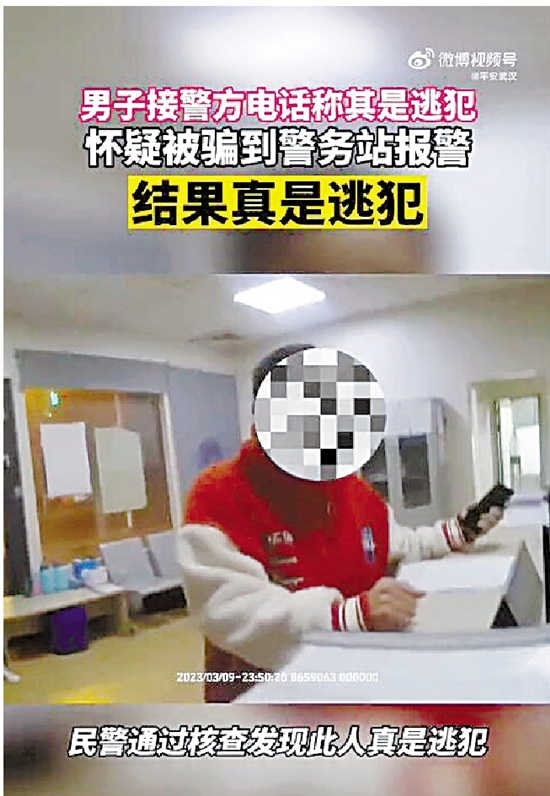 近日,湖北武汉青山,男子张某接到民警电话,称他被列为在逃人员劝其自首。张某以为遭遇冒充公检法诈骗,主动到工业二路警务站报警。令人意外的是,民警核查后,发现来电的是真警察,而张某的确是涉嫌电诈犯罪的在逃人员,将其当场抓获。