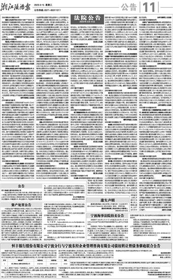杨斌(公民身份号码2308041980****0916):本院受理原告宁波建宸建材有限公司诉与被告杨斌买卖合同纠纷一案,现已审理终结。现依法向你送达(2022)浙0291民初2243号民事判决书。自公告之日起30日内来本院领取民事判决书,逾期即视为送达。如不服本判决,可在公告期满后15日内,向本院递交上诉状及副本,上诉于浙江省宁波市中级人民法院。逾期本判决即发生法律效力。 宁波高新技术产业开发区人民法院