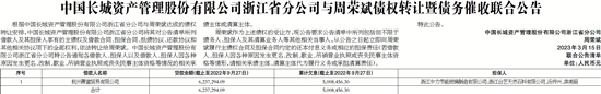 中国长城资产管理股份有限公司浙江省分公司与周荣斌债权转让暨债务催收联合公告