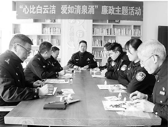 近年来,涌泉派出所不断加强党风廉政建设,以“警魂红”“清风绿”“守护蓝”绘制清廉画卷,擦亮“三彩绘泉色 廉洁润心田”清廉警队品牌。特别是今年以来,该所通过“廉政+活动”方式,开展了廉政主题民主座谈会、阅读廉政书籍等活动,将“廉”元素渗透进工作生活各方面。同时,建立民警家属微信群,强化家风监督,及时掌握“八小时”外民警思想状况;发布廉政教育信息,适时开展领导家访、家属进警营、发放清廉家书、书写清廉家训等活动,全力打造一支忠诚干净、风清气正、群众信任的公安队伍。