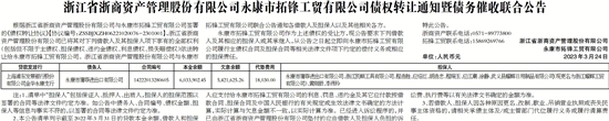 浙江省浙商资产管理股份有限公司永康市拓锋工贸有限公司债权转让通知暨债务催收联合公告