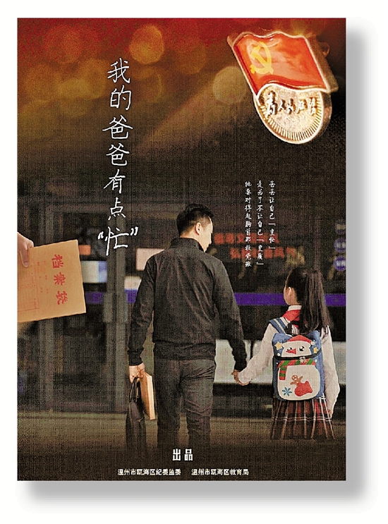 这部由温州市瓯海区纪委监委、瓯海区教育局联合报送的微视频作品,通过一个小姑娘的平实日记,叙述她爸爸的日常小事,塑造了一个“清廉党员+有爱父亲”形象。