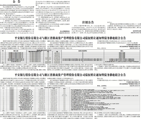 平安银行股份有限公司与浙江省浙商资产管理股份有限公司债权转让通知暨债务催收联合公告