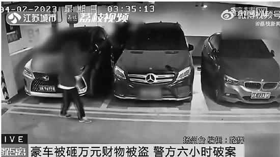 近日,江苏扬州一停车场内两辆豪车被砸,其中一车内丢失2万余元财物。民警通过监控发现,3个小伙趁夜深人静时,用破窗器把车玻璃砸碎,随后翻进车内盗取财物。民警调查发现,这3人乘坐的是一辆租来的汽车,随后通过租赁公司在车上安装的GPS将3人抓获,此时距离案发仅过了6个小时。