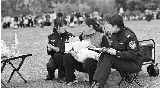 近日,临海市大洋派出所民警来到灵湖风景区,与正在春游、踏青的市民拉家常,讲解电信网络诈骗的常见骗术,全力守护群众“钱袋子”。 通讯员 杨灵叶