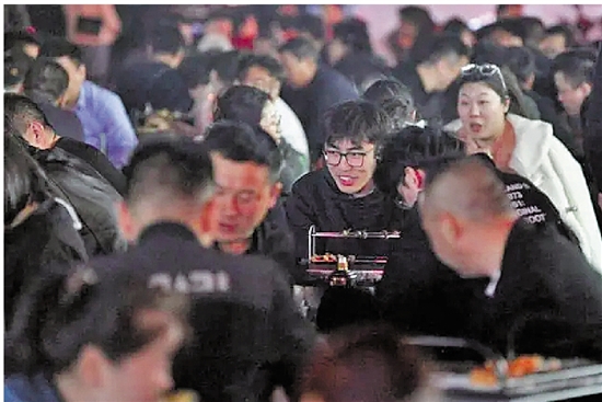 | 淄博烧烤摊,众人正在吃烧烤。 |