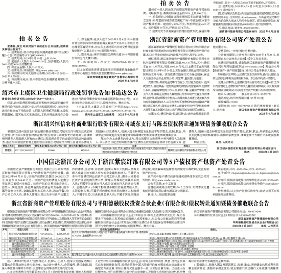 中国信达浙江分公司关于浙江紫宸纤维有限公司等5户债权资产包资产处置公告