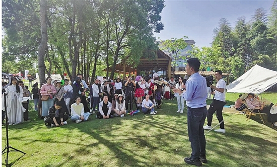 | 5月1日,浙江龙游县8090新时代理论宣讲团在詹家镇浦山村凤凰部落开展宣讲集市活动。 新华社记者张璇 摄 |