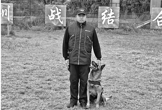 日前,在2023年浙江省警犬技术技能大赛中,来自台州市公安局椒江区分局巡特警大队的训犬员王健带领的警犬“龙翼”脱颖而出,获得警犬追捕项目全省第二名的佳绩。图为王健与“龙翼”在训练场上。