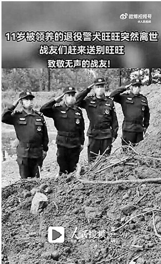 5月12日,河南南阳,11岁被领养的退役警犬旺旺突然离世,战友们赶来送别旺旺,致敬无声的战友!