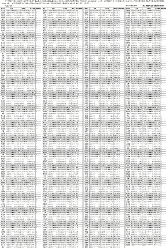 特此公告! 2023年5月23日 浙江泰隆商业银行股份有限公司