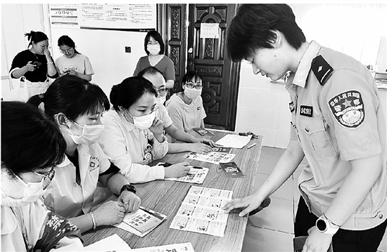 近日,诸暨店口派出所民警深入民营医院,借助图片、视频等形式,向医护人员介绍了假冒网购客服、公检法及刷单诈骗等常见电信网络诈骗类型的手段方式和防范技巧,帮助医护人员增强反诈意识。 通讯员 杨晶