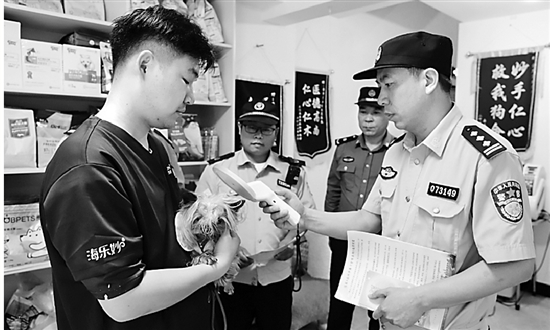 连日来,三门县公安局海游派出所联合行政执法部门深入辖区宠物医院、宠物店等经营场所开展突击检查,并对上门的顾客作普法宣讲,提升群众依法文明养犬的意识。