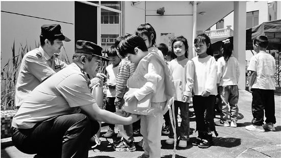 5月23日,东阳市公安局佐村派出所民警来到地处深山的三单乡幼儿园,通过互动游戏的方式,向孩子们传授防范溺水的知识和技能。