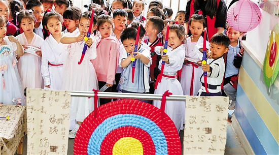 近日,德清县乾元镇总工会联手镇第一幼儿园举行“多彩游戏迎亚运”活动。孩子们体验了趣味射击、赛龙舟、投壶等游戏,了解亚运部分竞赛项目,感受亚运氛围。