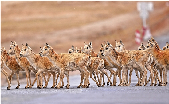 | 5月28日,在青海可可西里,一群雌性待产藏羚羊通过青藏公路。 记者从三江源国家公园管理局长江源园区可可西里管理处了解到,目前在青海可可西里,雌性藏羚羊迁徙产仔进入了高峰期。 藏羚羊是国家一级保护动物。每年5月至7月,来自青海三江源、西藏羌塘、新疆阿尔金山等地的雌性藏羚羊,会陆续迁徙到可可西里腹地卓乃湖产仔。从7月下旬开始、产仔结束后,雌性藏羚羊再携幼仔返回原栖息地。 新华社 张宏祥 摄 |