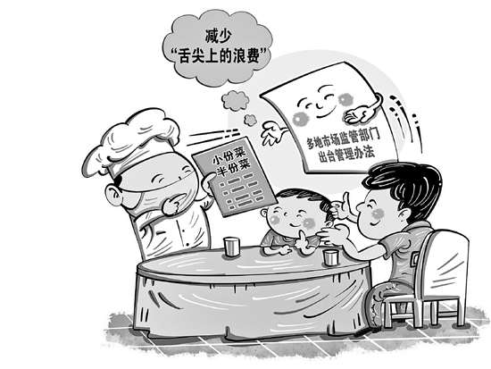 近年来,我国餐饮业连续发起“减少食品浪费 提供小份餐”的倡议。今年以来,多地市场监管部门出台管理办法,推广鼓励餐饮单位提供“小份菜”“半份菜”,引导消费者科学消费、合理消费、文明消费,减少“舌尖上的浪费”。
