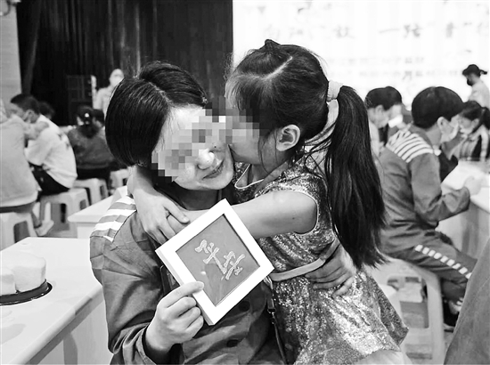 最近,周倩倩所在的监区正组织罪犯学习非遗项目婺绣技艺,她早就想好要绣一幅作品送给女儿。活动现场,她拿出亲手绣制的“平安”,“我就希望你平平安安”。接着,她如数家珍地向女儿和母亲“汇报”自己的改造成绩,并认真地对女儿说:“妈妈在这里学习新东西,你也要和妈妈一起加油呀!”看到佳佳点头,周倩倩转过头向身边的民警致谢:“我女儿原先不爱理人,脾气也暴躁,多亏了监狱安排的亲情帮教,今天看到她,整个人乐观开朗了很多。”