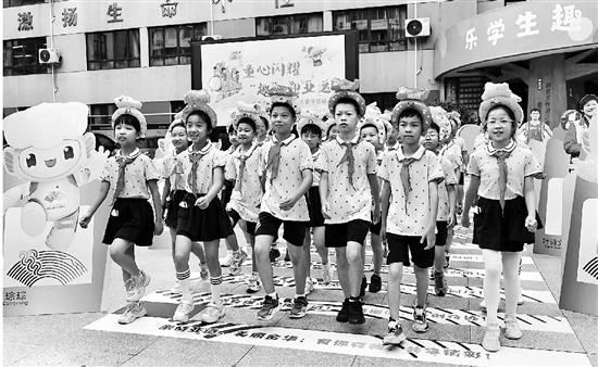 日前,金华市西苑小学举行了亚运主题游园活动。马球大作战、疯狂乒乓、神射手、翻滚排球、超级保龄球等游戏,让同学们快乐地“趣迎亚运”。 通讯员 邵伟芳 胡静怡