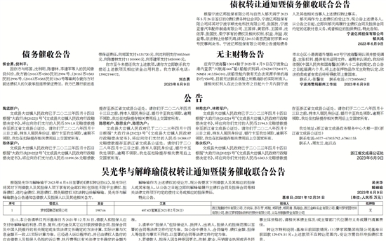 根据吴光华与解峰瑜于2023年4月6日签署的《债权转让协议》,吴光华已将其对下列借款人及其担保人项下享有的全部权利(包括但不限于主债权、担保债权、违约金债权、利息债权、损失赔偿权)依法转让给解峰瑜。吴光华与解峰瑜联合公告通知各借款人及担保人以及其他相关各方。
