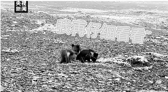 近日,青海玉树,巡护员在海拔近4500米的代曲村境内,拍到3只小棕熊找妈妈的生动画面。在积雪未消的河床上,它们奔向巡护员,驻足观望后,转头离开,并发出急切的呼叫声。在巡护员帮助下,它们当晚已回到熊妈妈身边。
