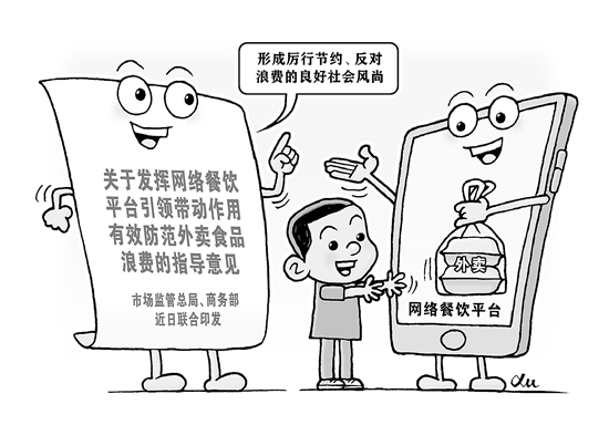 | 市场监管总局、商务部近日联合印发《关于发挥网络餐饮平台引领带动作用 有效防范外卖食品浪费的指导意见》,落实反食品浪费法等法律规定,充分发挥平台企业引领带动作用,增强平台内商户和消费者的文明消费意识,形成厉行节约、反对浪费的良好社会风尚,促进网络餐饮行业规范健康发展。 新华社 徐骏 作 |
