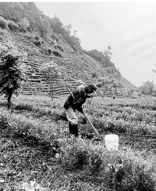 | 老曹在茶田间种树 |