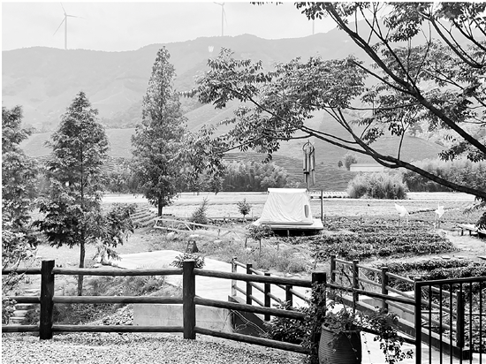 山上随风旋转的电力风车,茶园、溪旁精心布置的白色帐篷,在琛碛村的大岗山咖啡营地,随手一拍就是一幅“美丽乡村”画卷。2022年10月以来,琛碛村成为网红露营打卡地。自然山林的治愈感不断引来躲避城市喧嚣的人流,也让老曹和村民们对绿色生态产生经济价值有了更深切的理解和体会。
