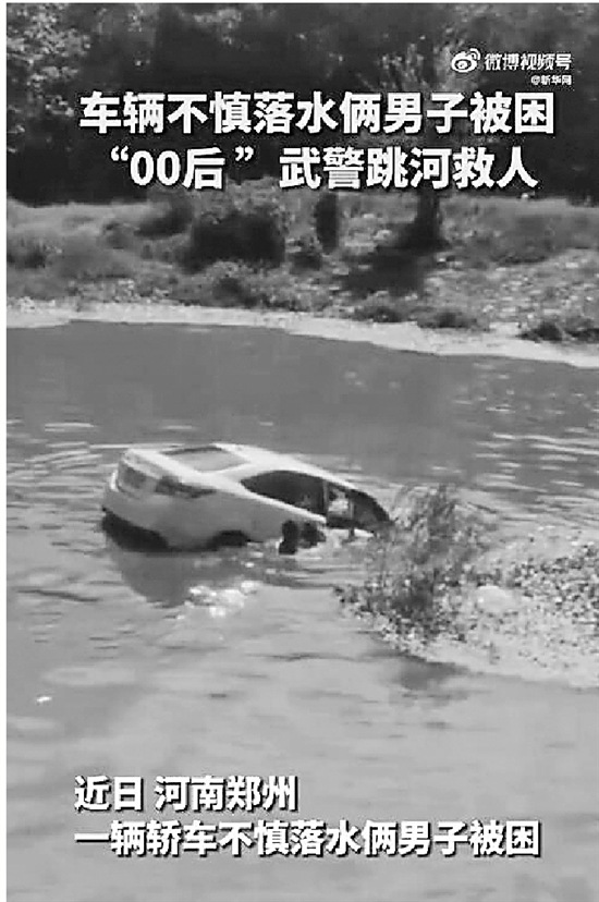 近日,在河南郑州,一辆汽车不慎落水,两名男子被困。回家探亲的00后武警战士付一豪急忙入水成功救出两人,并对其进行了急救按压。确认两人无大碍后,受伤的付一豪悄悄离开。网友:跳水救人的你真帅!