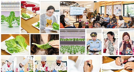 | ▲6月6日,15位大众评审对决赛团队种植的“翠恬”生菜进行试吃、打分,上海市长宁区市场监管工作人员进行了现场快检。 陈达通 摄 |