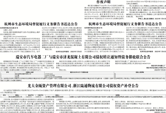 光大金瓯资产管理有限公司、浙江陆通物流有限公司债权资产补登公告