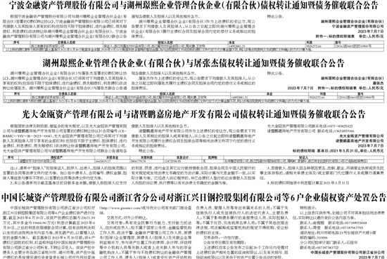 根据宁波金融资产管理股份有限公司与湖州璟熙企业管理合伙企业(有限合伙)签署的《债权转让协议》,宁波金融资产管理股份有限公司已将其对下列借款人及其担保人享有的权利(包括但不限于担保债权、违约金债权、损失赔偿权、利息债权)依法转让给湖州璟熙企业管理合伙企业(有限合伙)。宁波金融资产管理股份有限公司与湖州璟熙企业管理合伙企业(有限合伙)联合公告通知各借款人及担保人以及其他相关各方。