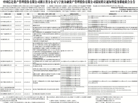 中国信达资产管理股份有限公司浙江省分公司与宁波金融资产管理股份有限公司债权转让通知暨债务催收联合公告