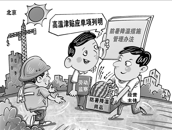 | 针对北京近期连续出现40度高温天气情况,北京市人社局会同市卫健委、市总工会等部门7月7日对高温天气作业劳动权益保障开展专项检查。检查发现,目前高温津贴名称各异,劳动监察人员特别提醒,各经营主体应把高温津贴单项列明,严格执行《防暑降温措施管理办法》,保障安全生产。 新华社 商海春 作 |