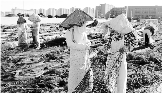 随着东海部分海域开渔日益临近,温岭市石塘镇的渔民们抓紧时间修理渔船、修补渔网,为出海作业做好准备。 周学军 摄