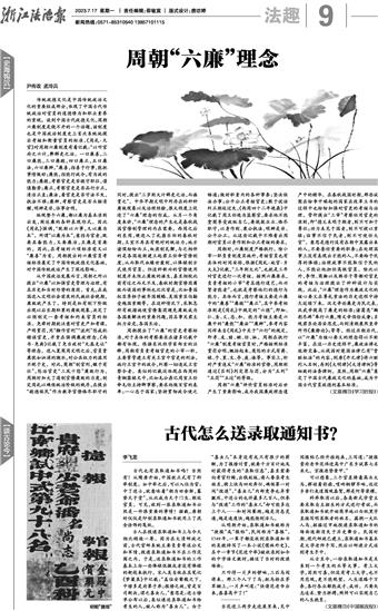 传统政德文化是中国传统政治文化的重要组成部分,体现了中国古代传统政治对官员的道德修为和职业素养的重视。谈到中国古代政德文化,周朝六廉制度是绕不开的一个话题,该制度也是中国政治制度史上首次系统地提出考核和衡量官员的标准。《周礼·天官》对周朝六廉制度有着记载:“以听官府之六计,弊群吏之治。一曰廉善,二曰廉能,三曰廉敬,四曰廉正,五曰廉法,六曰廉辨。”廉善,指善于行事,能把事情做好;廉能,指能行政令,有为政的能力;廉敬,考察官吏是否敬守职位,谨慎勤劳;廉正,考察官吏是否品行方正,清洁正直;廉法,看官吏是否守法不失,执法不移;廉辨,考察官吏是否头脑清醒,明辨是非,临事分明。