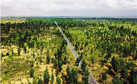 | 夏日时节,内蒙古自治区杭锦旗境内的穿沙公路绿意盎然,绿色沿着道路前行,并向两旁的沙地铺展,犹如一条条“绿色动脉”在库布其沙漠中绵延。 从1999年建成第一条穿沙公路至今,杭锦旗境内穿沙公路里程达到930公里,并形成“四纵五横”的沙漠公路网。这些穿沙公路不仅给昔日被沙漠阻隔而出行无路的农牧民带来便利,也为实施国家防沙治沙重点工程、企业产业化投资治理库布其沙漠打下了坚实的基础。 新华社记者 刘磊 摄 |