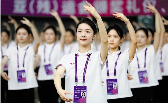 7月24日,杭州亚(残)运会颁奖礼仪、升旗手集中专项培训在浙江交通职业技术学院正式开启,为期1个月。将从基础仪态、技术细节、流线流程、赛事应急等方面,对776名颁奖礼仪、升旗手进行系统性、专业化训练,力争打造一支专业队伍,顺利完成杭州亚(残)运会颁奖仪式任务。