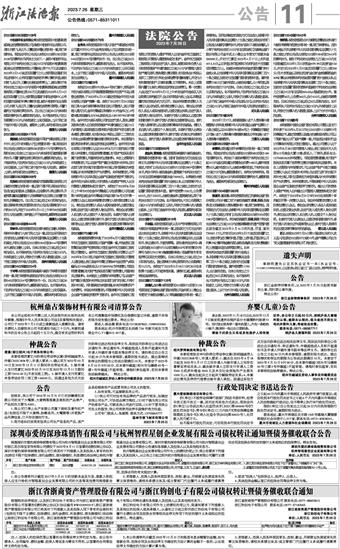 根据相关法律规定,以及浙江钧创电子有限公司与浙江省浙商资产管理股份有限公司签署的《债权转让协议》(协议编号BW42209231F),浙江省浙商资产管理股份有限公司已将其对下列借款人及其担保人项下享有的全部权利(包括但不限于主债权、担保债权、违约金债权、利息债权、损失赔偿权)依法转让给浙江钧创电子有限公司。浙江省浙商资产管理股份有限公司与浙江钧创电子有限公司特此通知各借款人及担保人以及其他相关各方。