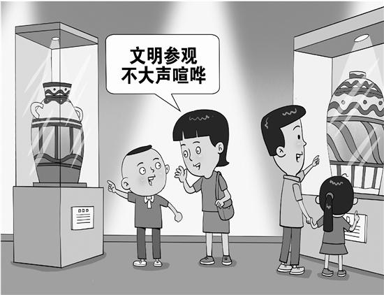 | 正值暑期,各大博物馆迎来参观高峰,随之引发的文明参观话题受到社会关注。 文化和旅游部近日发布的暑期文明旅游提示提醒游客,在场馆内参观不大声喧哗、不违规饮食,遵守拍照摄像规定;遵守旅游场所规定,服从工作人员疏导指引等。 新华社 朱慧卿 作 |