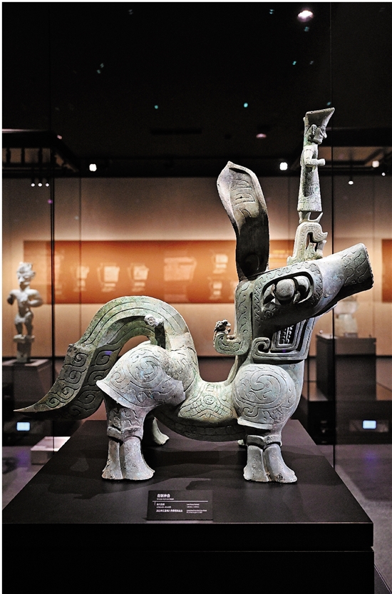 | 7月26日在三星堆博物馆新馆拍摄的青铜神兽。 |