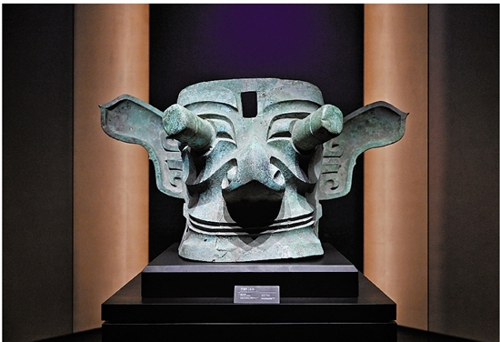| 7月26日在三星堆博物馆新馆拍摄的青铜纵目面具。 |