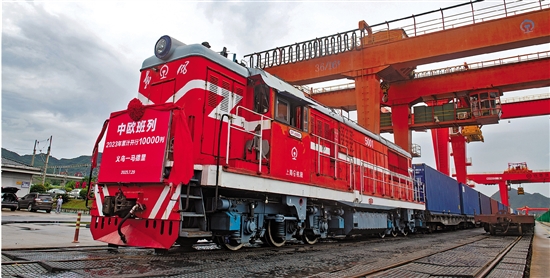 7月29日10时18分,随着X8020次中欧班列从义乌西站缓缓开出,前往西班牙马德里,今年中欧班列累计开行已达10000列,较去年提前22天破万列,发送货物108.3万标准箱,同比增长27%。