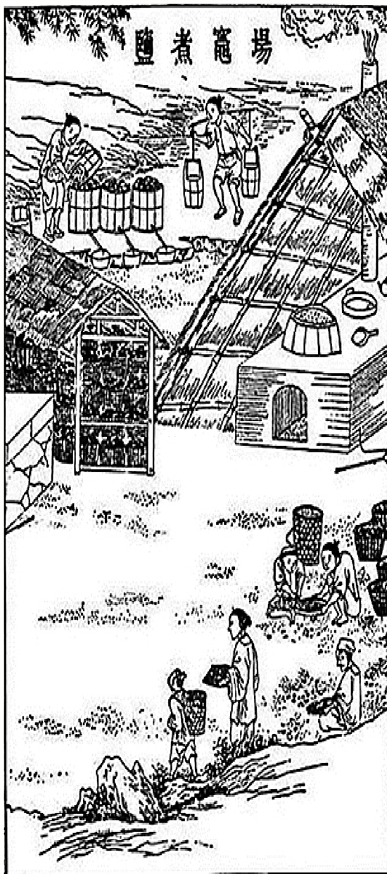 | 《天工开物》中的制盐场景。 |